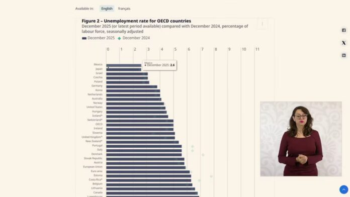 La tasa de desempleo según los datos de la Organización para la Cooperación y el Desarrollo Económicos (OCDE= mantiene a México como la economía con menor desempleo. Siete países de la OCDE experimentaron un aumento en su tasa de desempleo, y cuatro experimentaron un descenso.